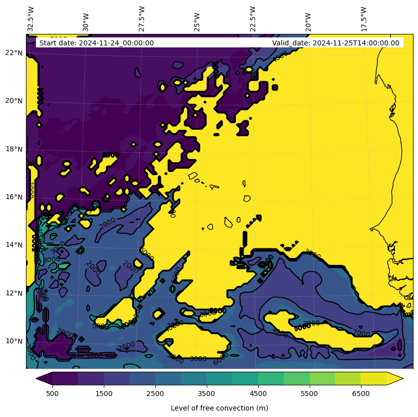 - Level of free convection (m)