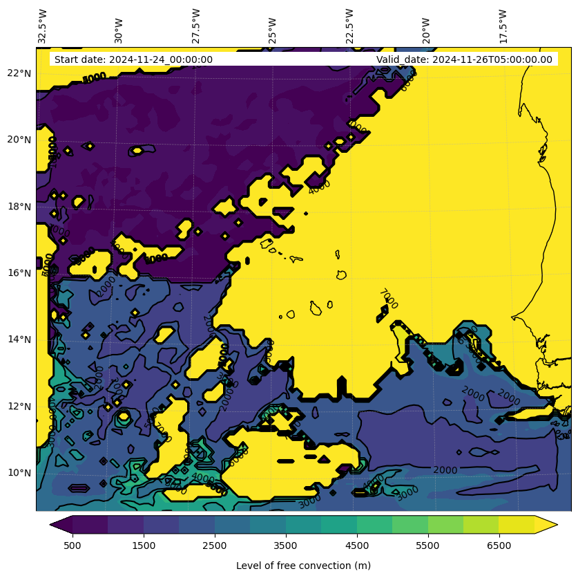 - Level of free convection (m)
