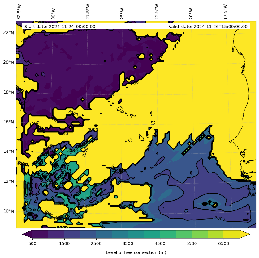 - Level of free convection (m)