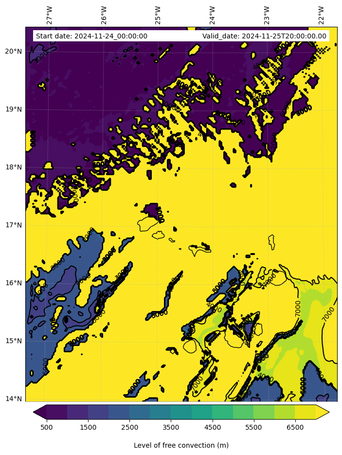 - Level of free convection (m)
