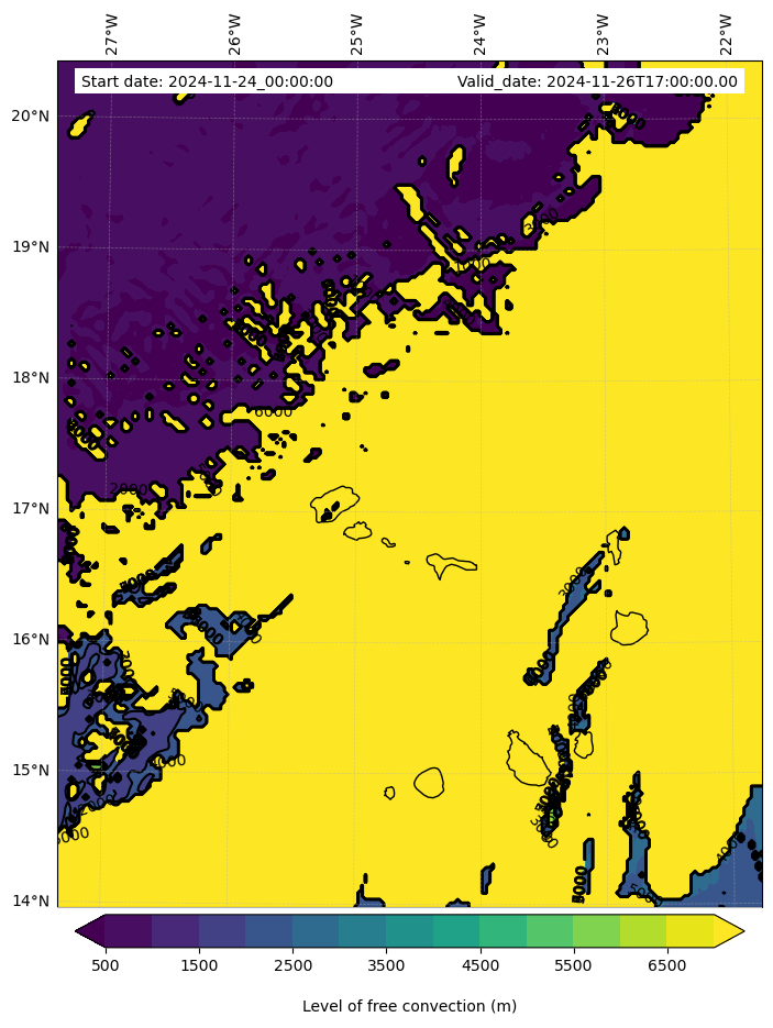 - Level of free convection (m)