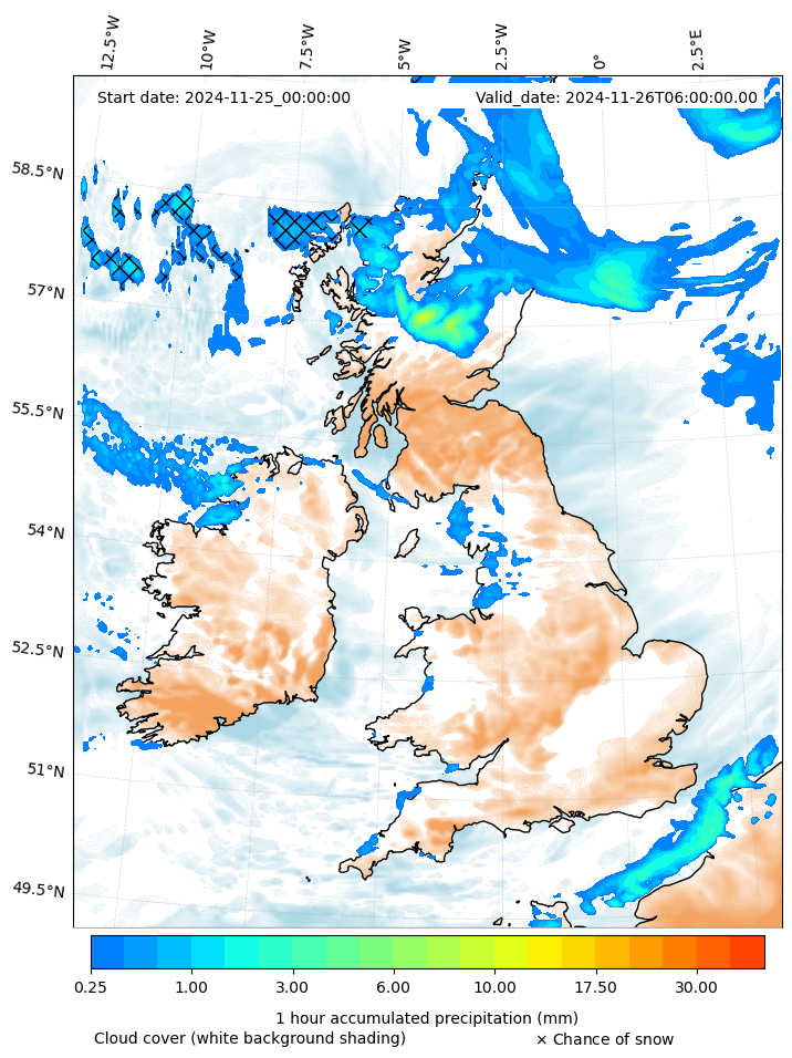 - Snow mixing ratio (g kg¯¹)
