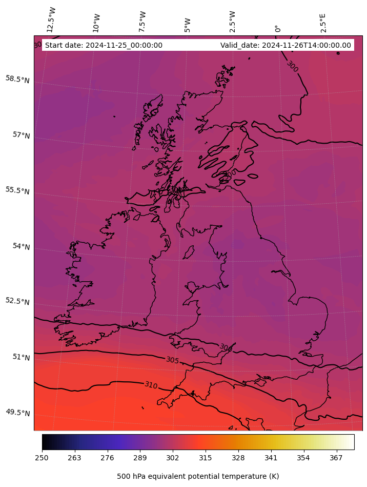 - Equivalent Potential Temperature (K)