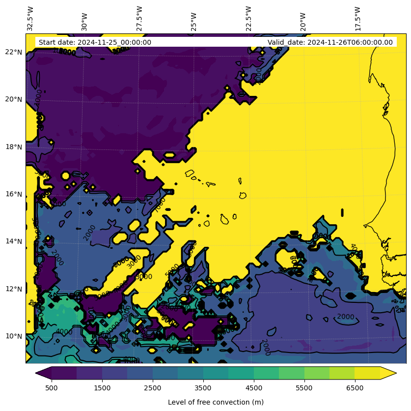 - Level of free convection (m)