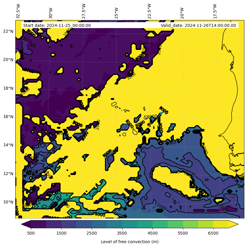 - Level of free convection (m)