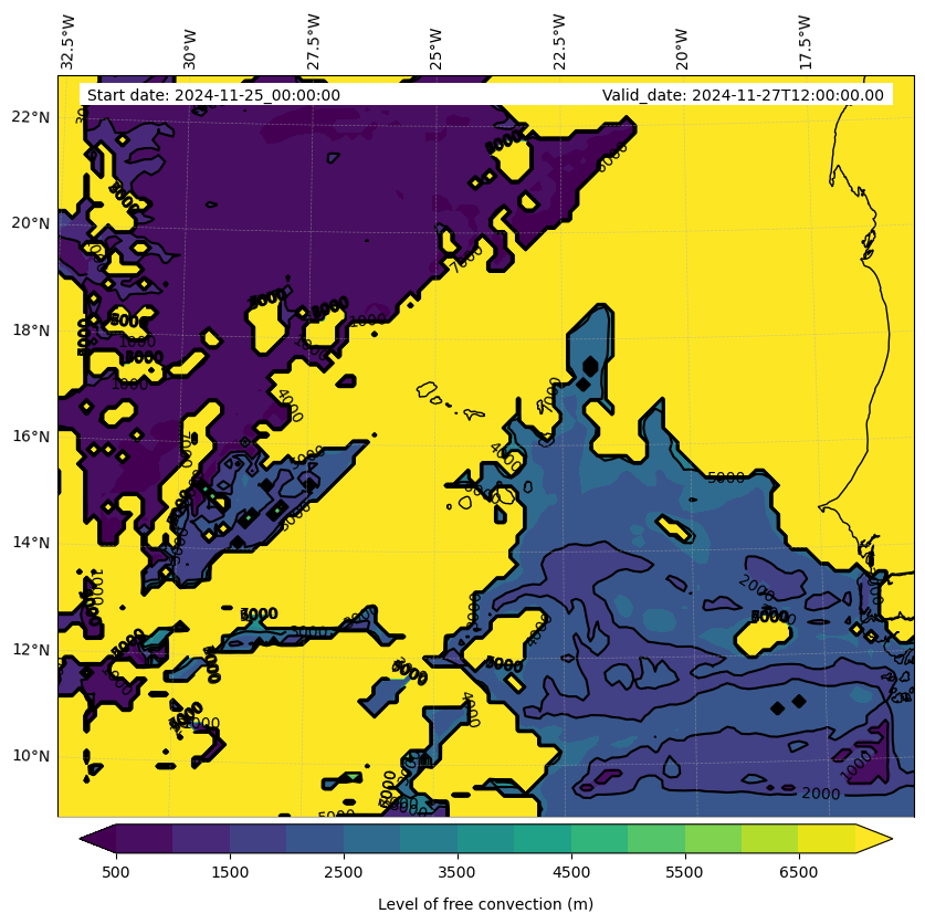 - Level of free convection (m)