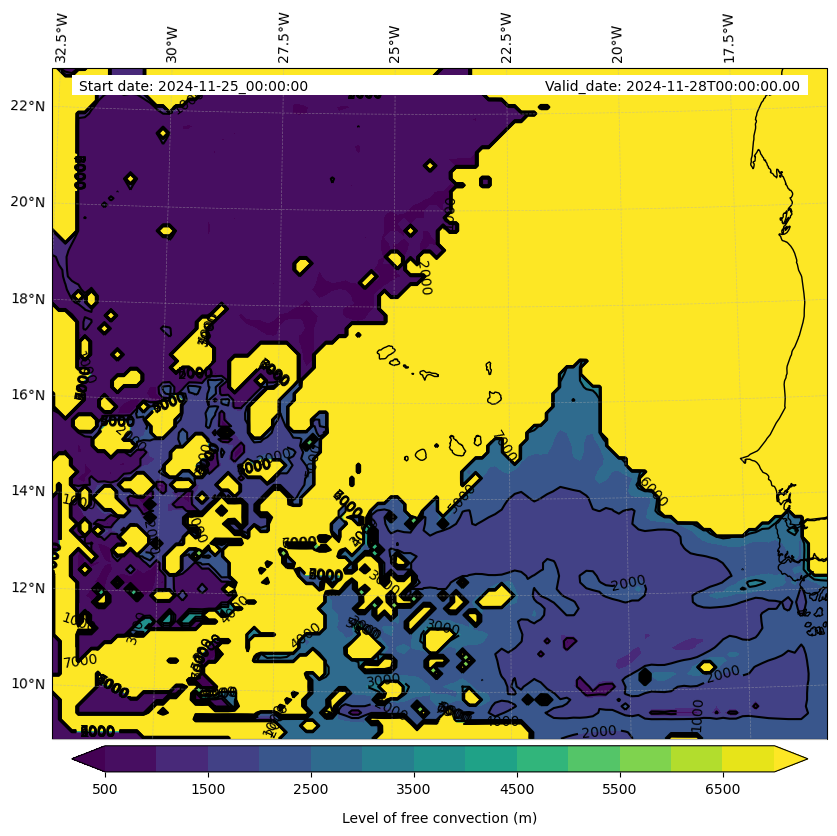 - Level of free convection (m)