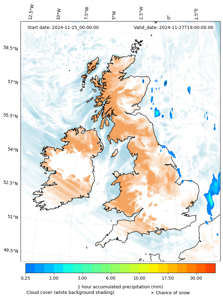 - Snow mixing ratio (g kg¯¹)