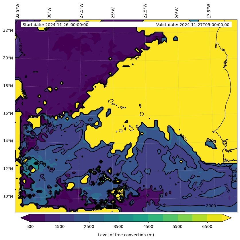 - Level of free convection (m)
