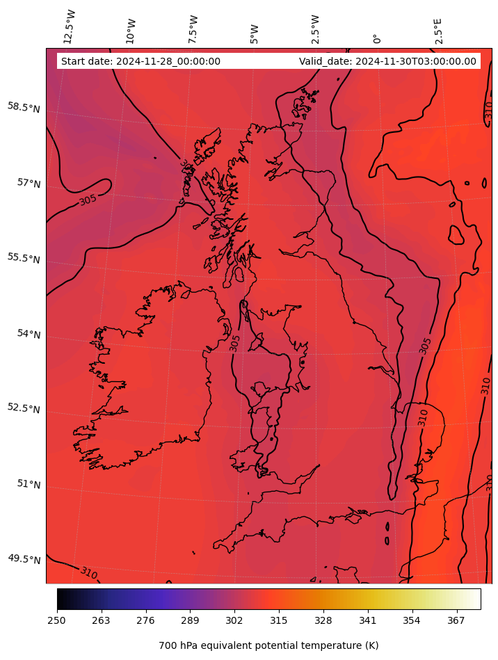 - Equivalent Potential Temperature (K)