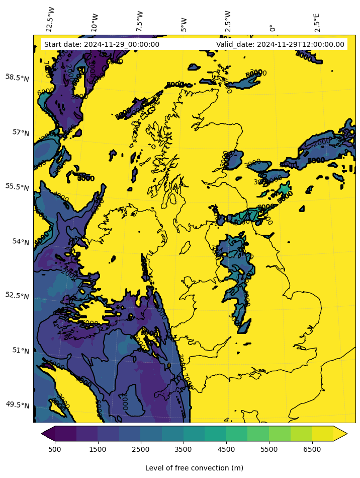 - Level of free convection (m)