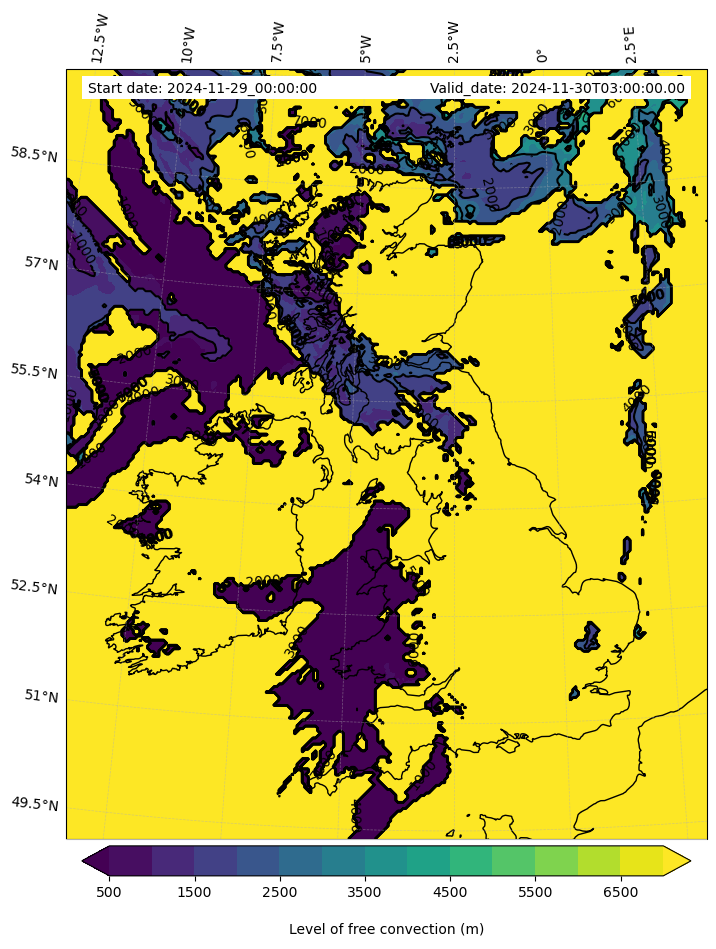 - Level of free convection (m)