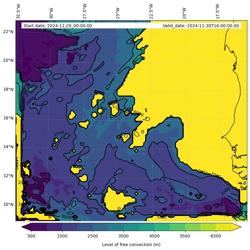 - Level of free convection (m)
