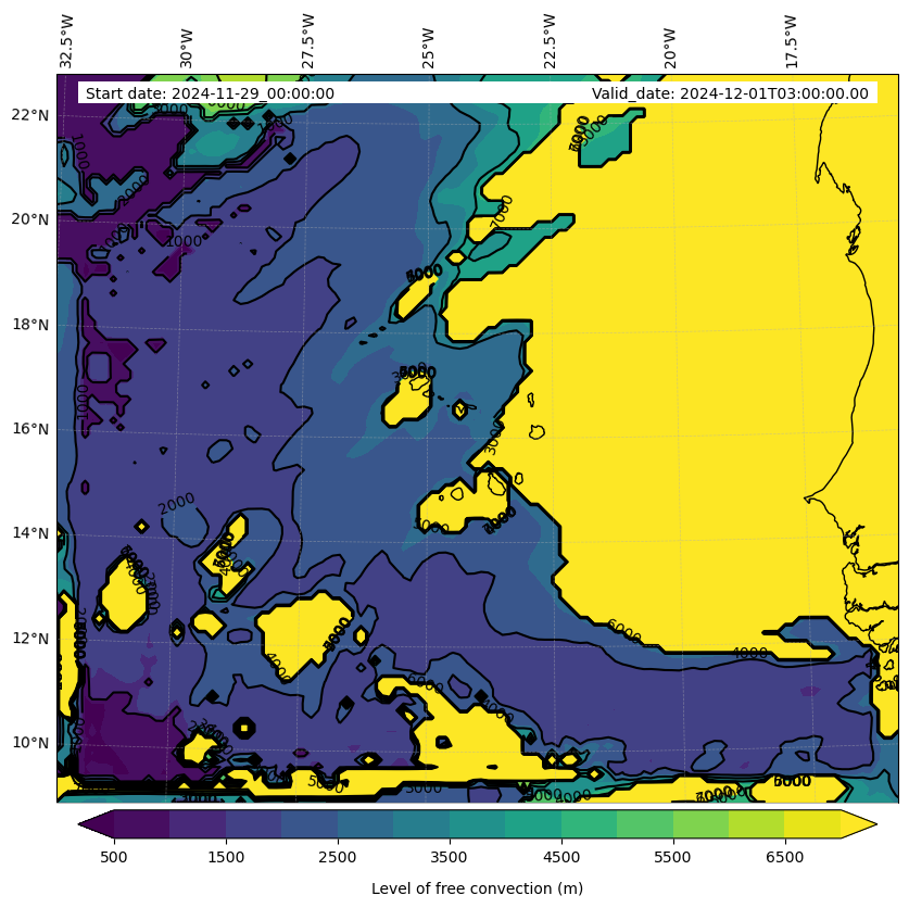 - Level of free convection (m)