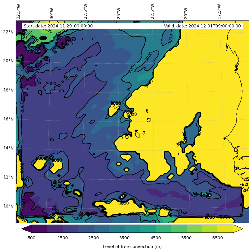 - Level of free convection (m)