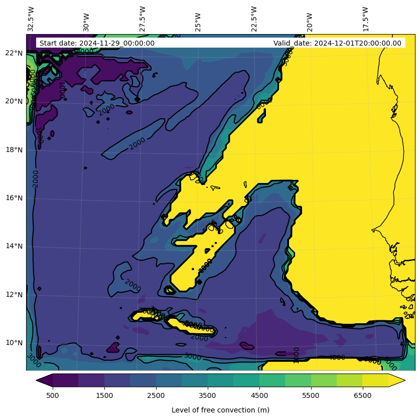 - Level of free convection (m)