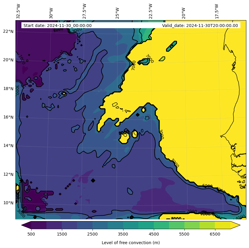 - Level of free convection (m)