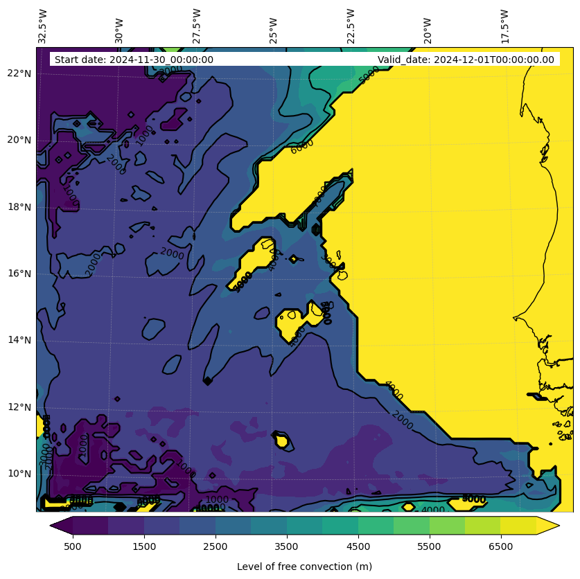 - Level of free convection (m)
