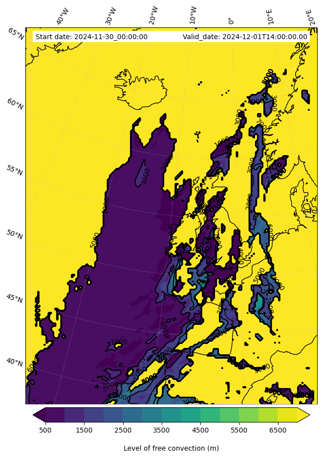 - Level of free convection (m)