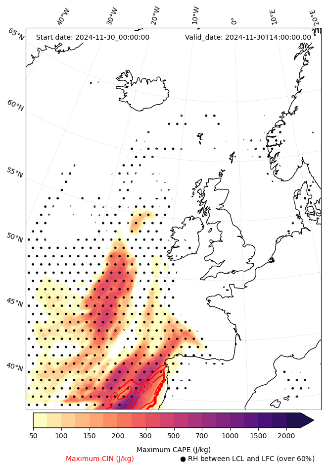 • Maximum CAPE (J/Kg)