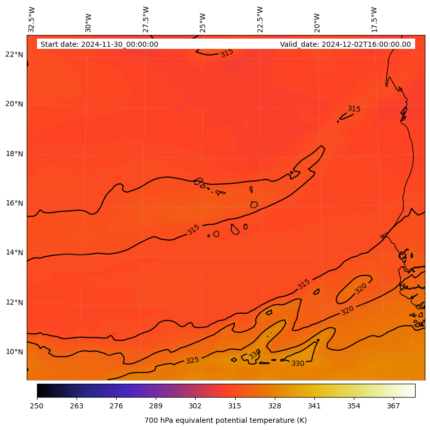 - Equivalent Potential Temperature (K)