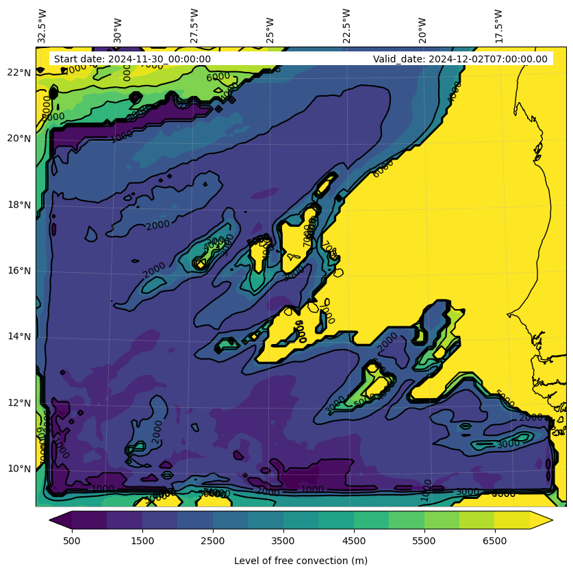 - Level of free convection (m)