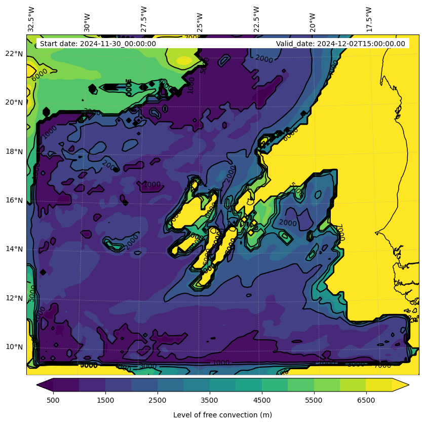 - Level of free convection (m)