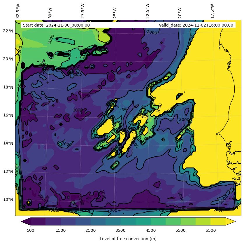 - Level of free convection (m)
