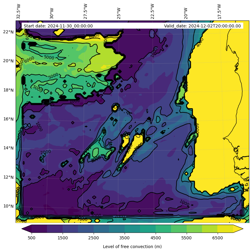 - Level of free convection (m)