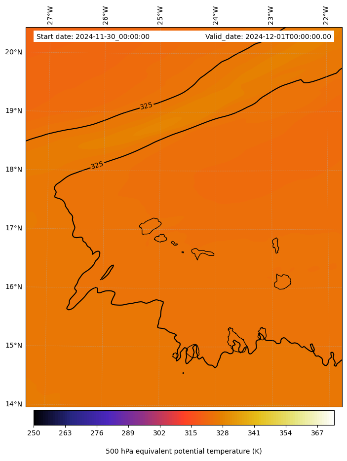 - Equivalent Potential Temperature (K)