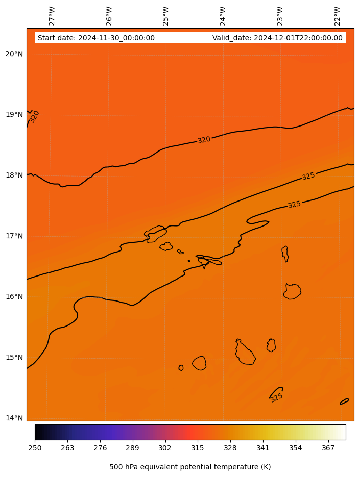 - Equivalent Potential Temperature (K)