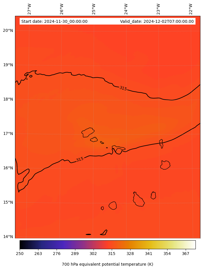 - Equivalent Potential Temperature (K)