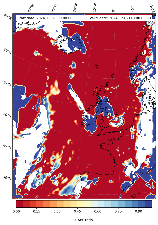 - Maximum CAPE (J/Kg)