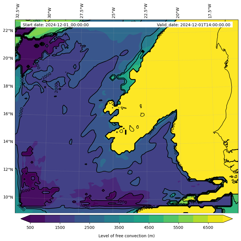 - Level of free convection (m)