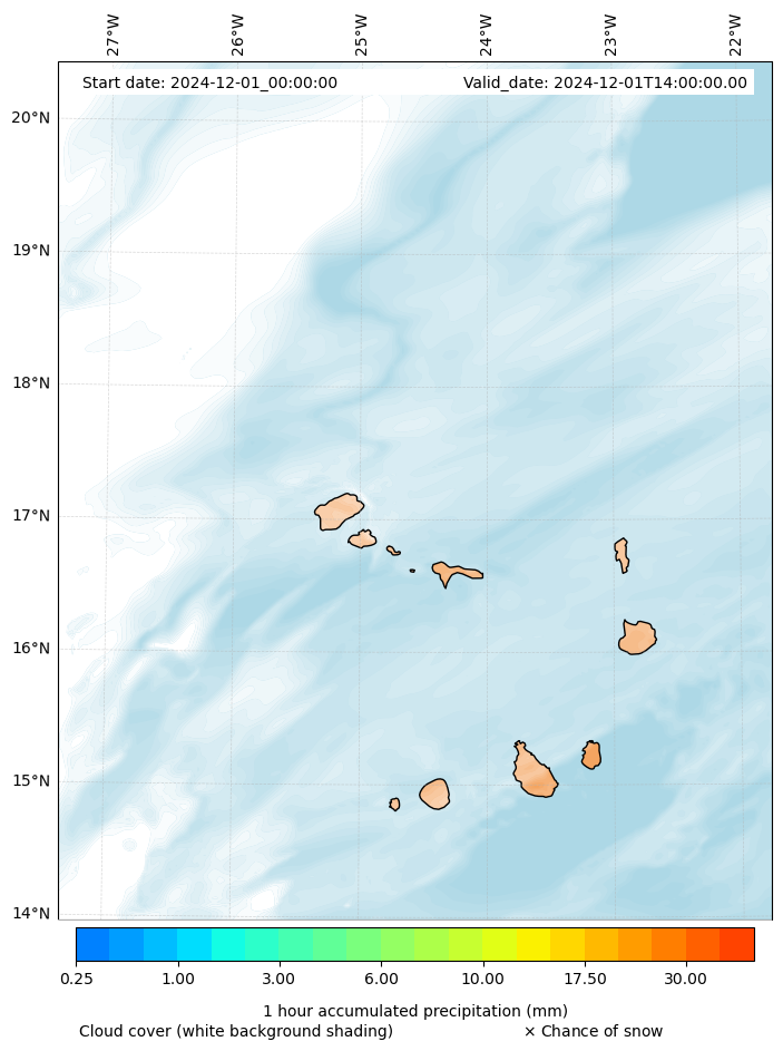 - Snow mixing ratio (g kg¯¹)