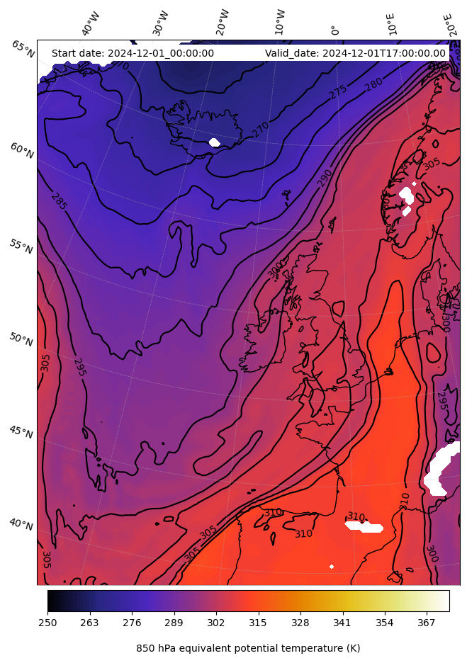 - Equivalent Potential Temperature (K)