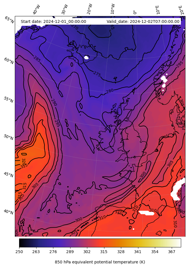 - Equivalent Potential Temperature (K)