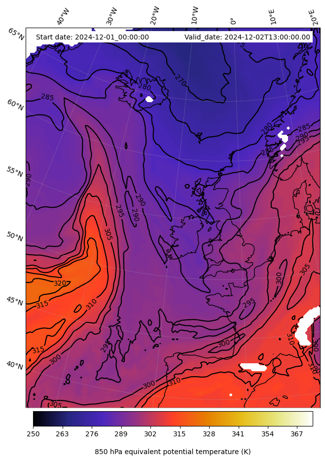 - Equivalent Potential Temperature (K)
