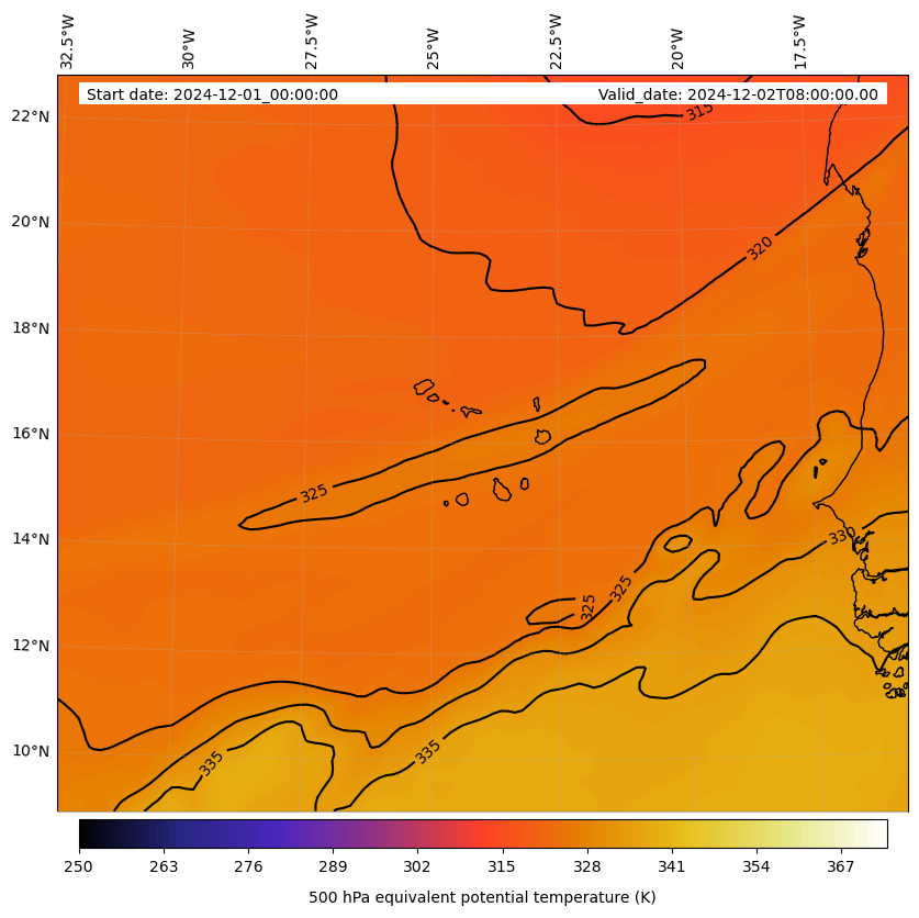 - Equivalent Potential Temperature (K)