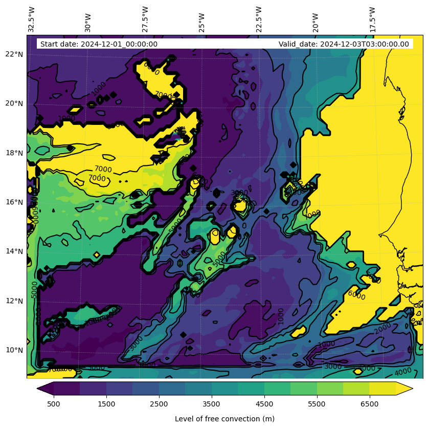 • Level of free convection (m)