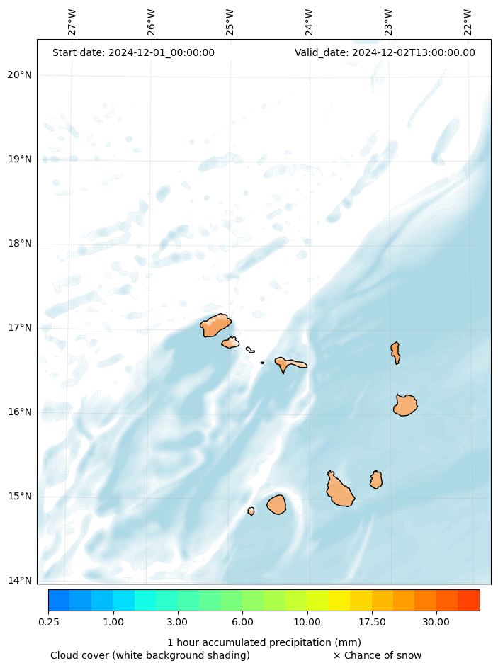 - Snow mixing ratio (g kg¯¹)