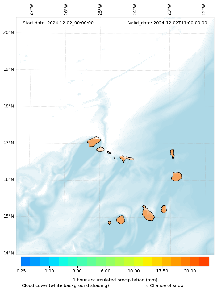 - Snow mixing ratio (g kg¯¹)
