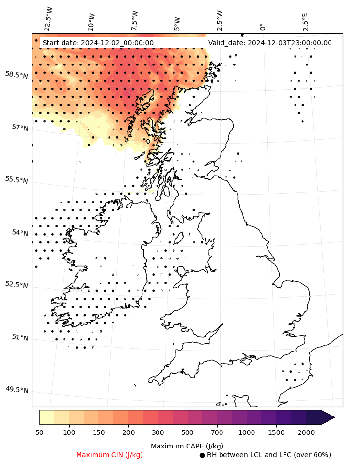 • Maximum CAPE (J/Kg)