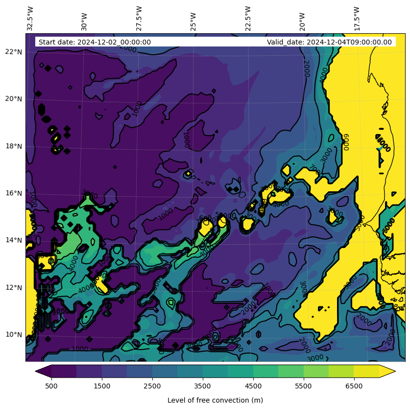 • Level of free convection (m)