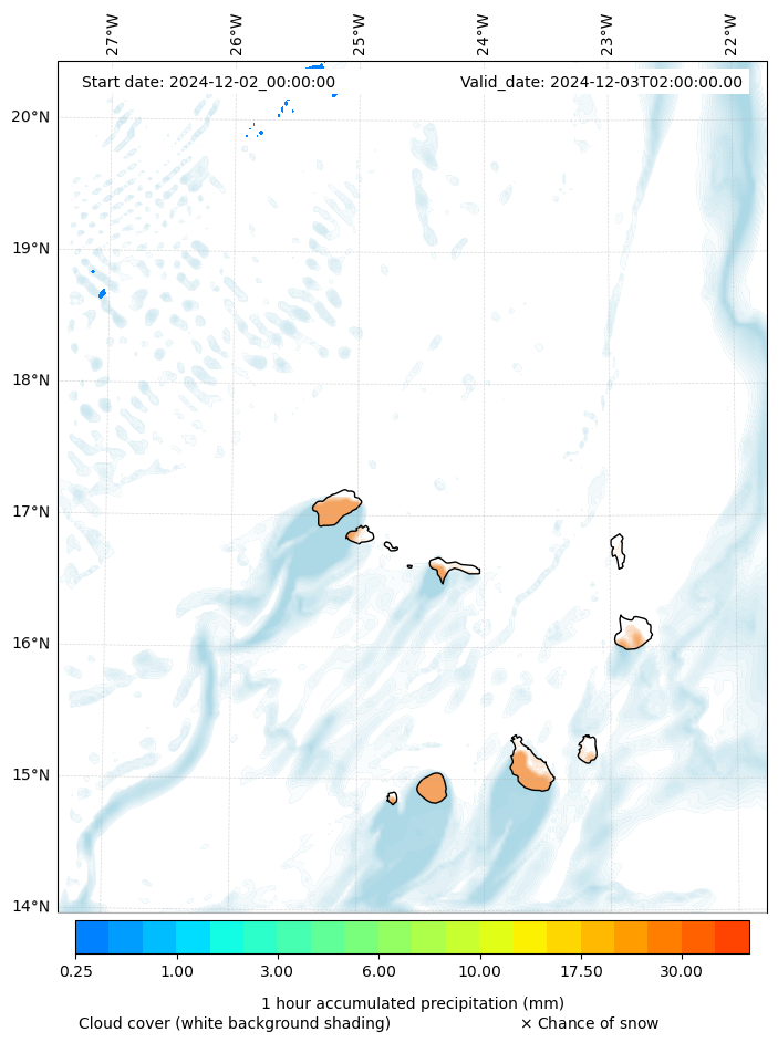 - Snow mixing ratio (g kg¯¹)