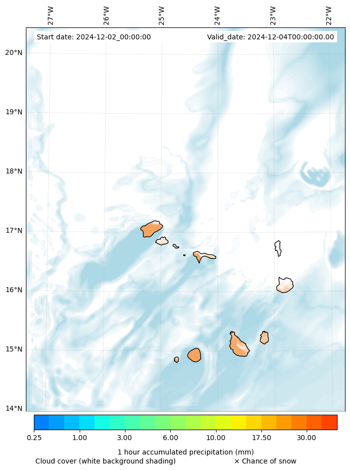- Snow mixing ratio (g kg¯¹)