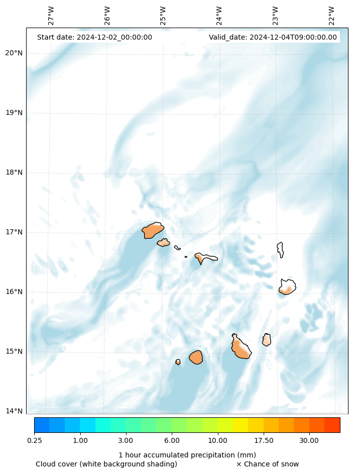 - Snow mixing ratio (g kg¯¹)