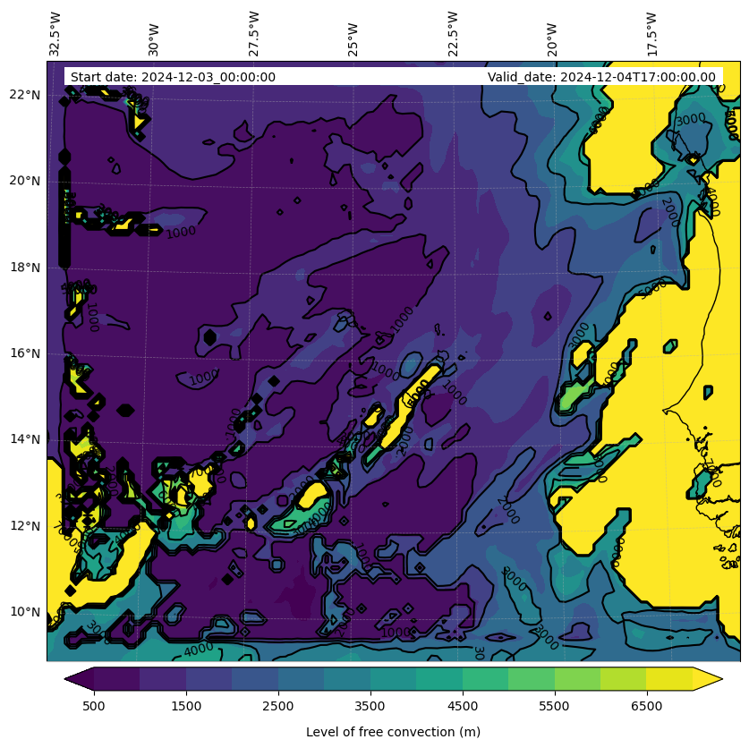 - Level of free convection (m)