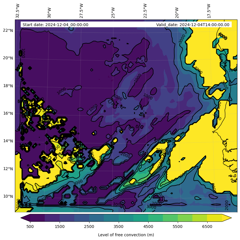 • Level of free convection (m)