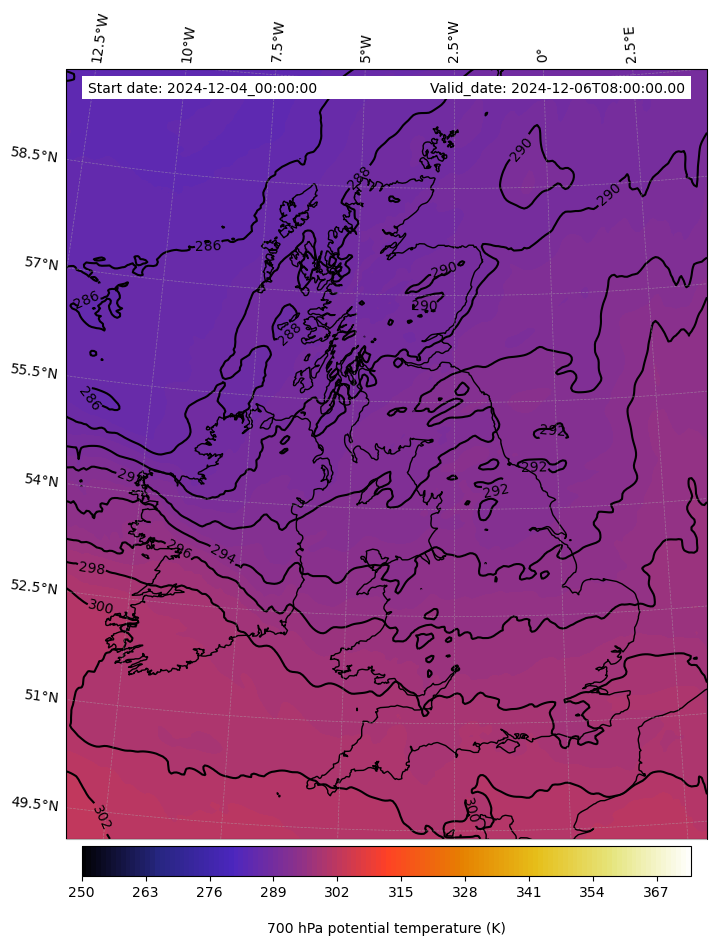 - Equivalent Potential Temperature (K)